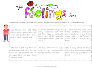 There are moments when C experiences a meltdown and those are the times that I wish I can help her handle her emotions better. So the other day, we came up with a wheel of emotions, so we could explore the different feelings people may experience one time or another.